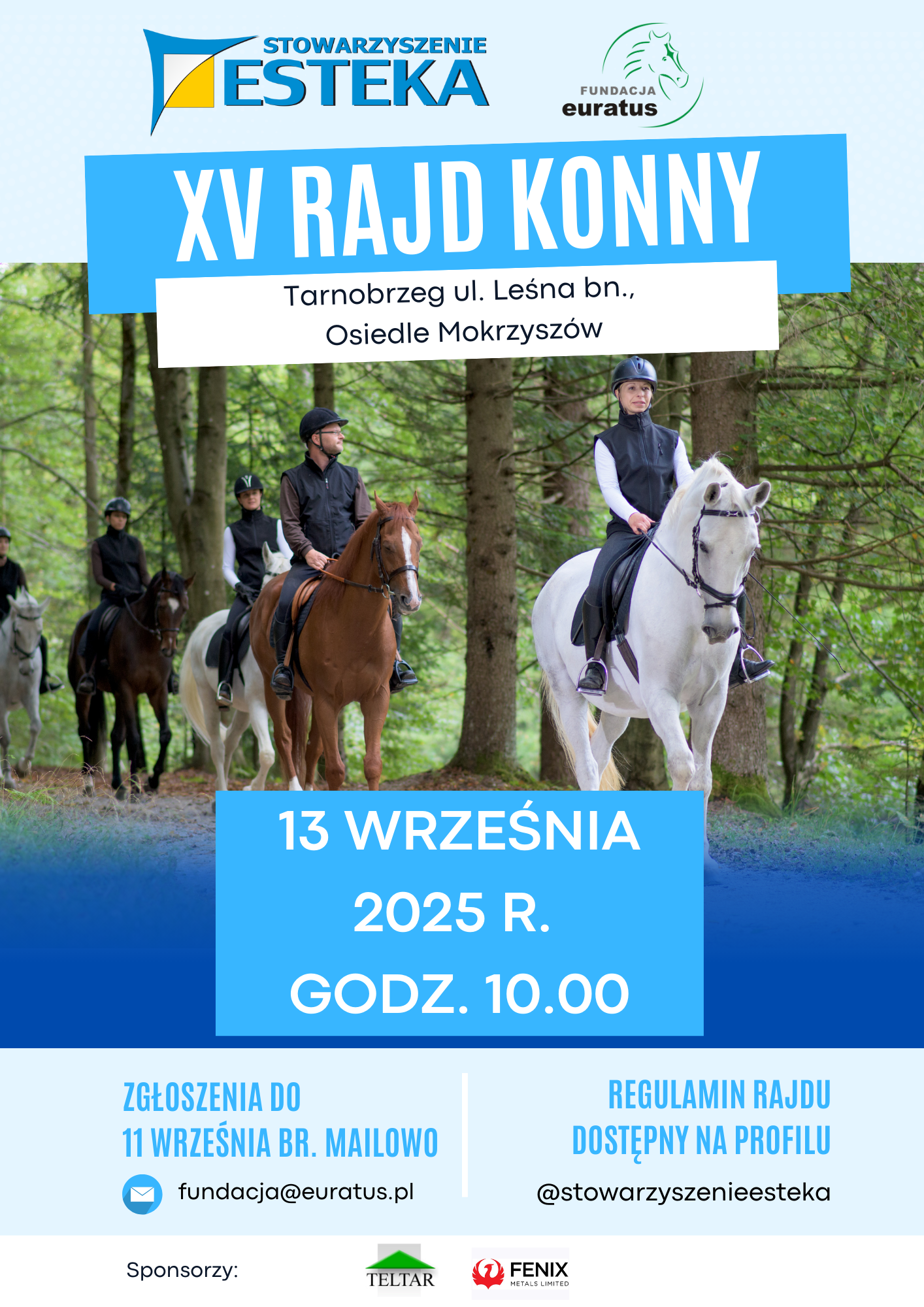 9 września 2023 r. odbędzie się kolejna odsłona Rajdu konnego. Projekt realizowany jest przez Stowarzyszenie ESTEKA przy wsparciu finansowym Miasta
